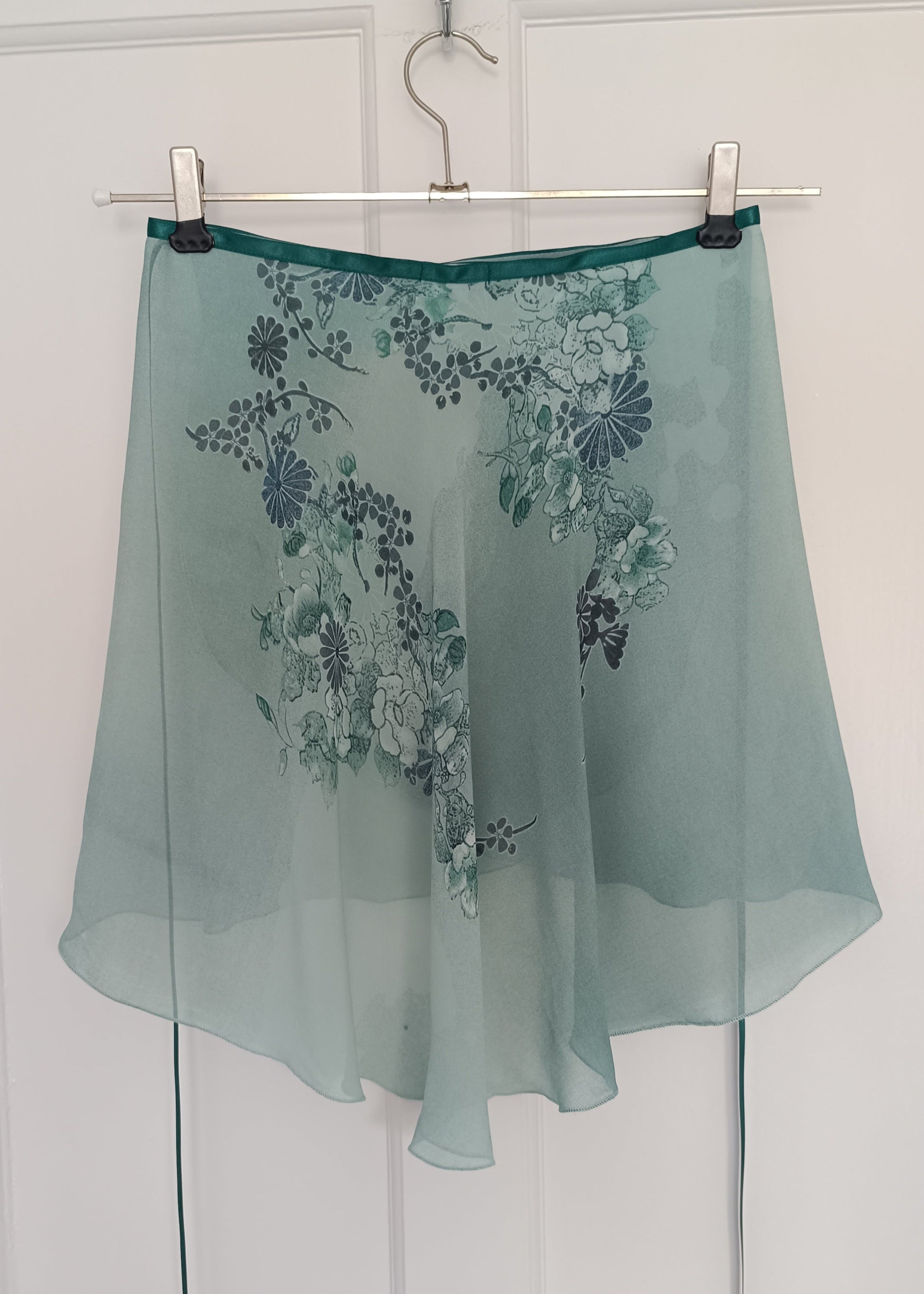 The skirts are cut into flattering high - low shape, longer at the back, which floats around enhancing the movement. I use satin or gross-grain ribbon to fasten.