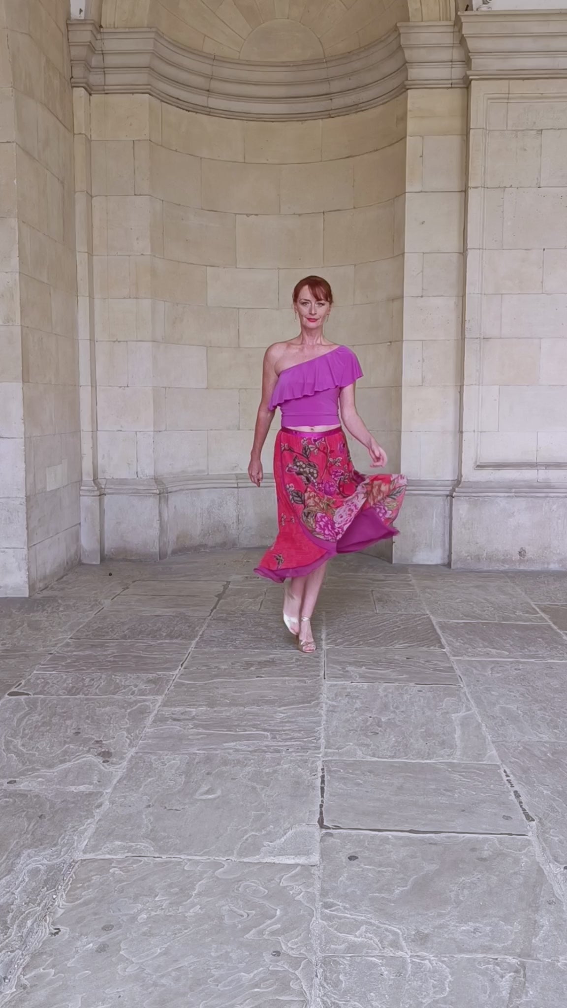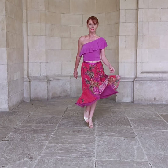 One shoulder crop top makes fun addition to your dance wardrobe. Versatile piece to match your skirts / trousers for your dance events or practice. Perfect for summer months and your travels. Made from soft poly / elastane jersey, easy care , not ironing needed.