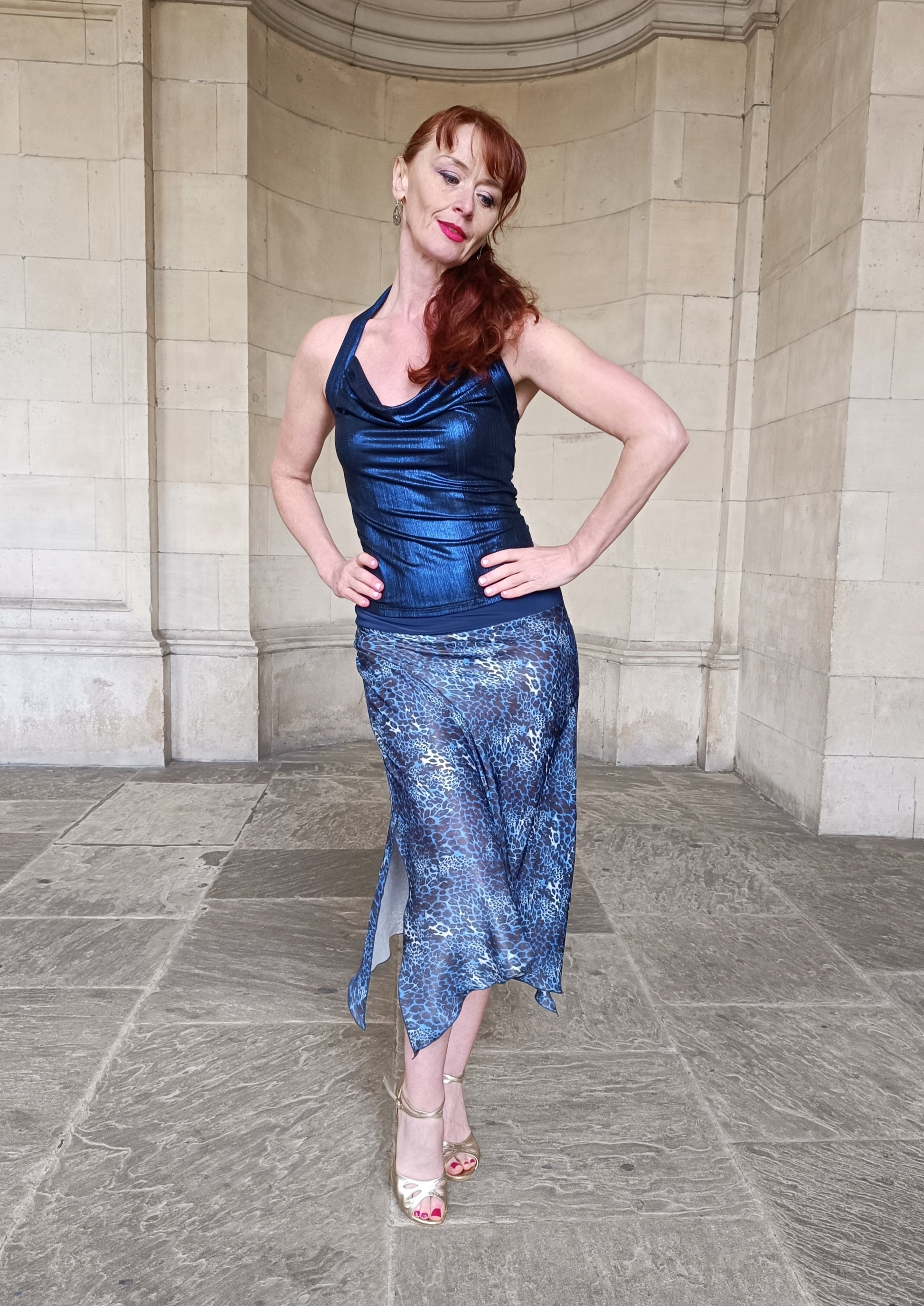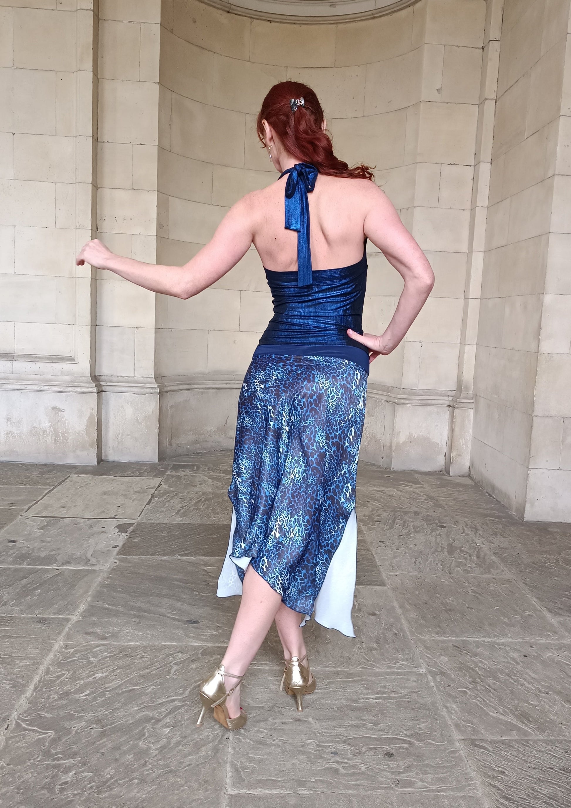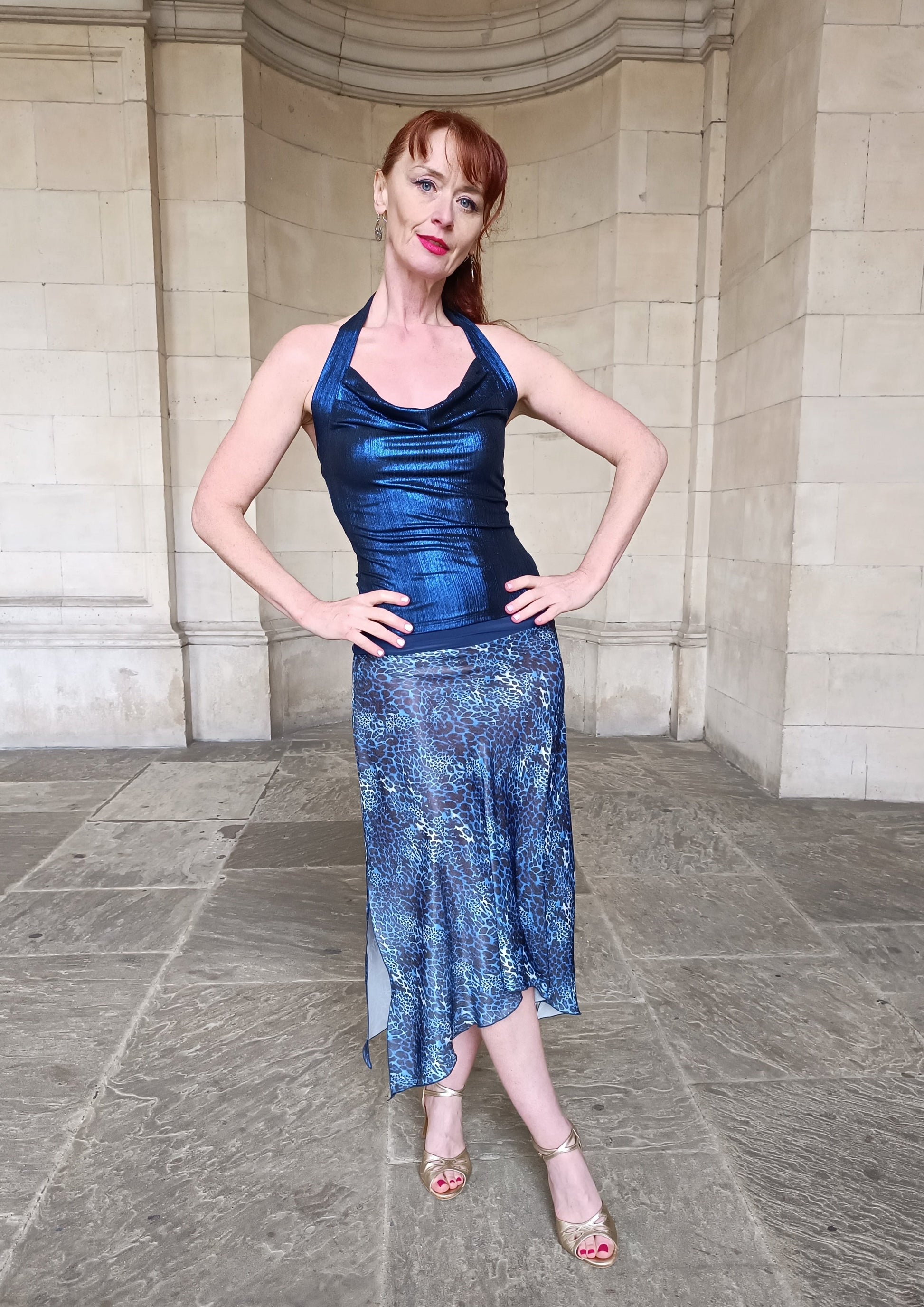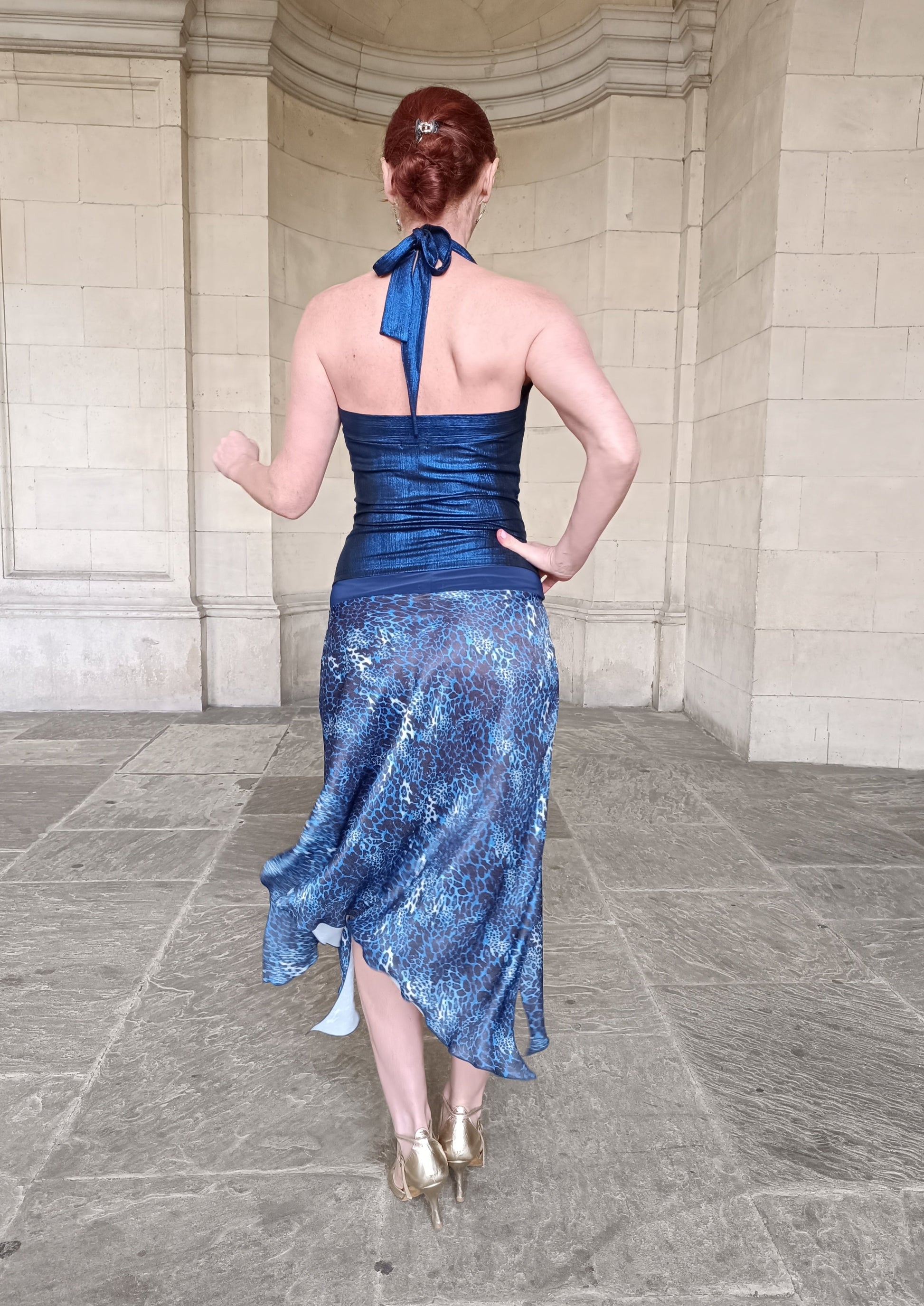 Matched with blue shimmer Vesper halterneck top. Order sperate.