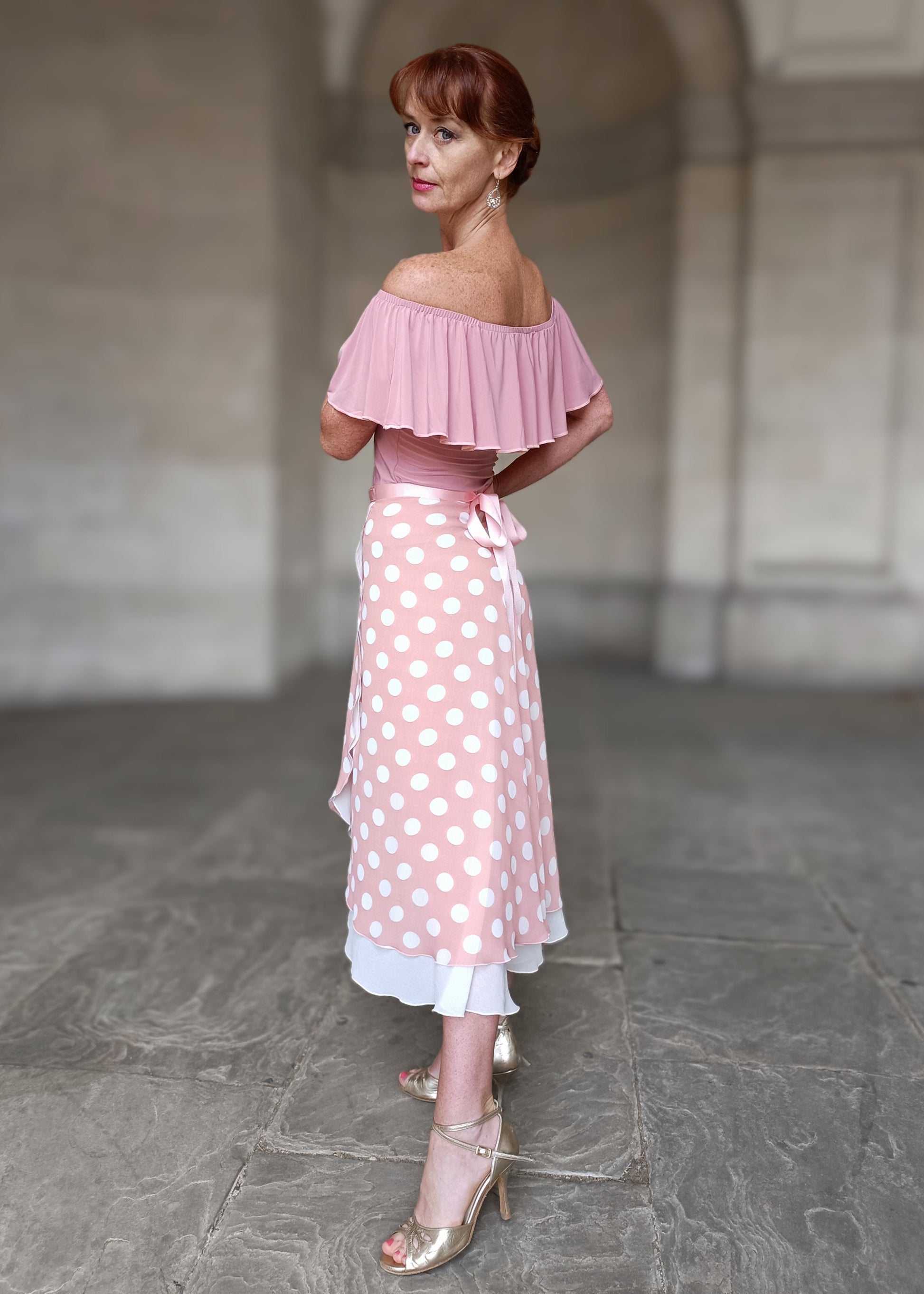 It is paired with off shoulder top Fernanda in complimenting blush pink shade (sold separatly).